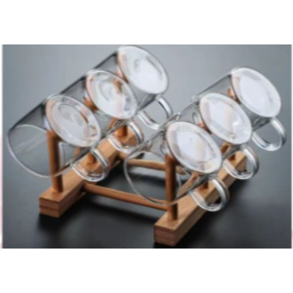 JOGO 6 XICARA VIDRO 100ML C/SUPORTE BAMBU