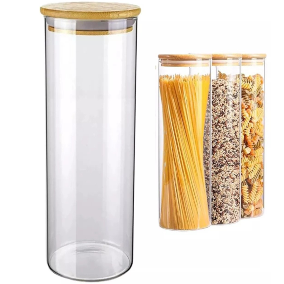 2. POTE VIDRO 1500ML TAMPA-BAMBU REDONDO