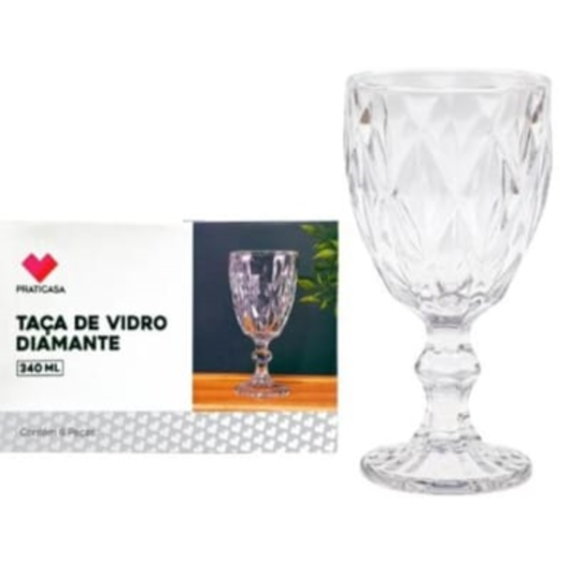 JOGO 6 TACA VIDRO 340ML DIAMOND
