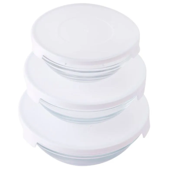 JOGO 3 POTE VIDRO TAMPA-PLASTICA PRET/BRANC