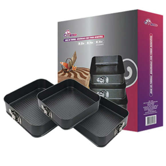 JOGO 03 FORMA METAL AANTE-ADERENTE QUADRADA FUNDO-REMOVIVEL