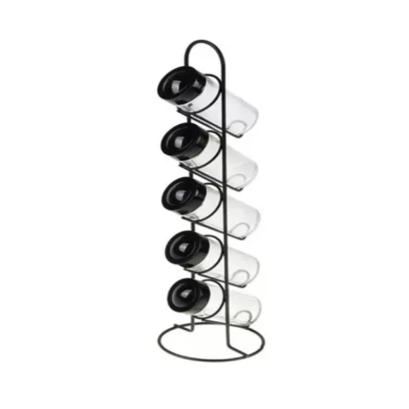 PORTA TEMPERO VIDRO VERTICAL C/5 + SUPORTE PRETO