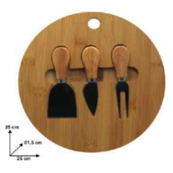 TABUA P/QUEIJO MADEIRA C/3-UTENS REDONDA