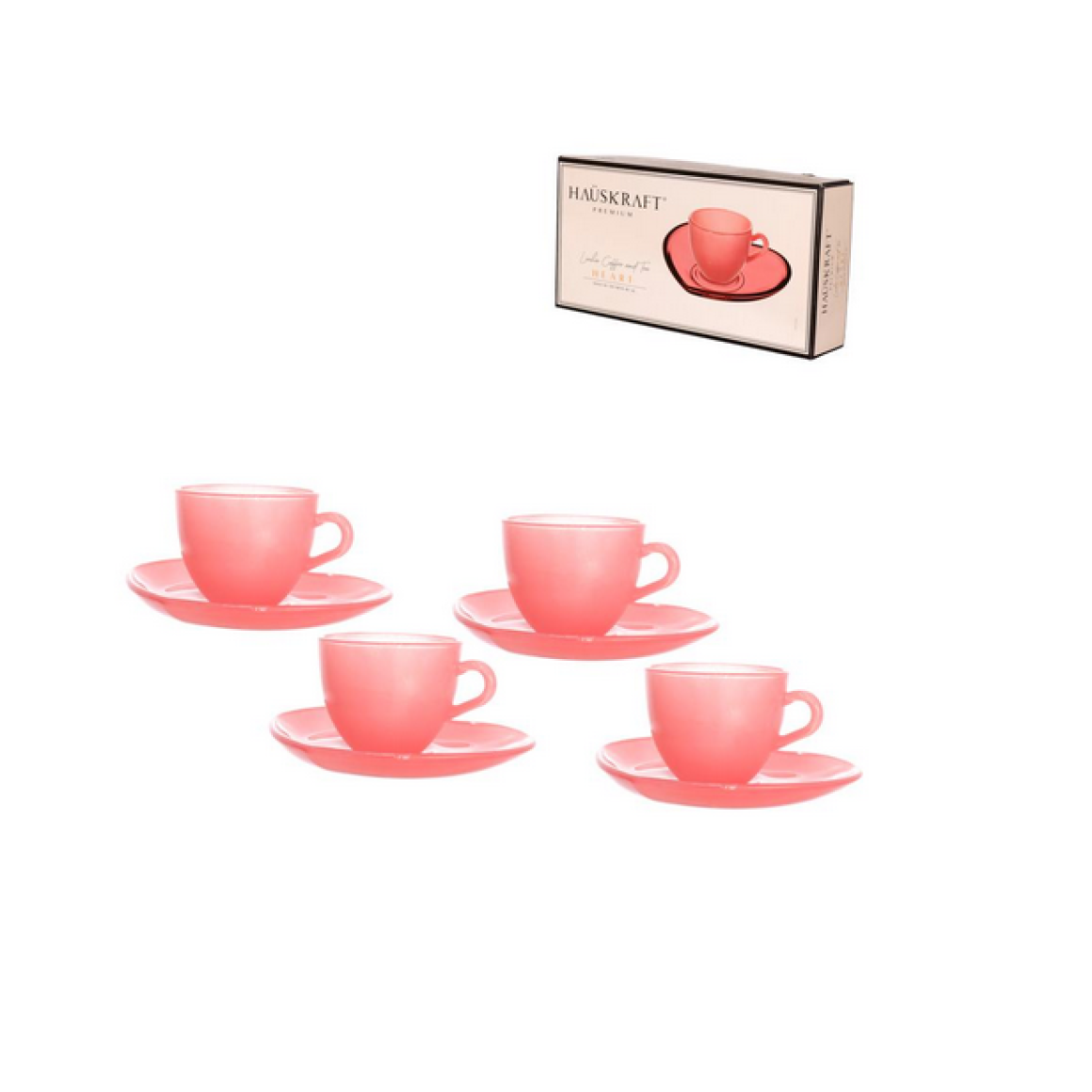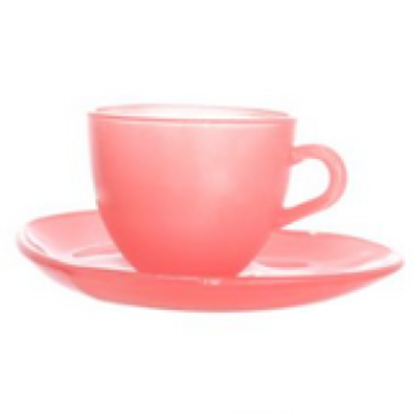 2. JOGO 4 XICARA+PIRES VIDRO 85ML ROSA