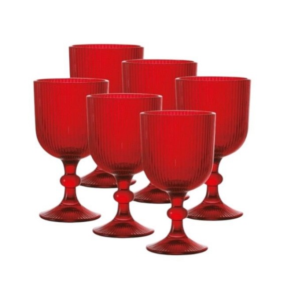 JOGO 6 TAÇAS VIDRO 390ML VERSALHES VERMELHO